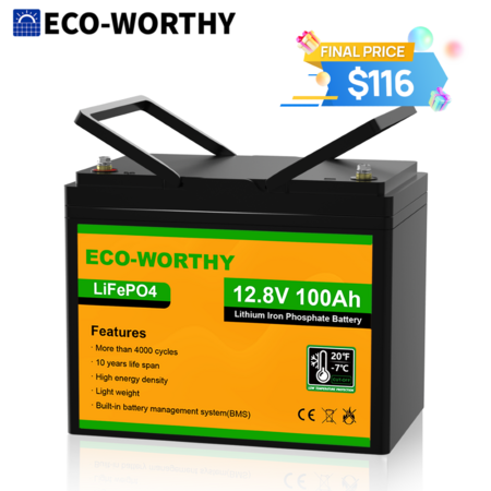 Eco-Worthy 12V 100AH LiFePO4 Lithium Battery for RV Solar Panel $115.50 + Free Shipping