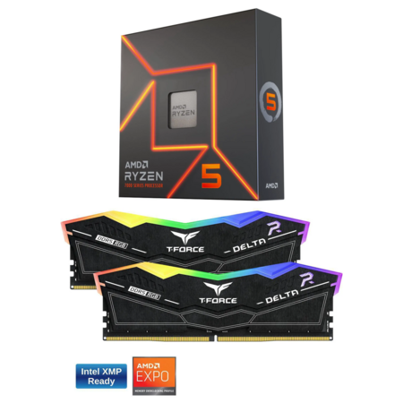 AMD Ryzen 5 7600X 6-Core CPU + 16GB (2x8GB) Team Group RGB DDR5 6000 RAM