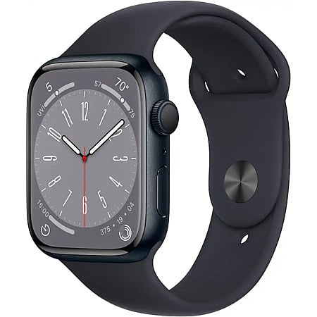 Apple Geek Squad Certified Refurbished Watch Series 8 (GPS) 45mm Aluminum Case with Midnight Sport Band - M/L - Midnight - (2022) $169.99